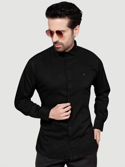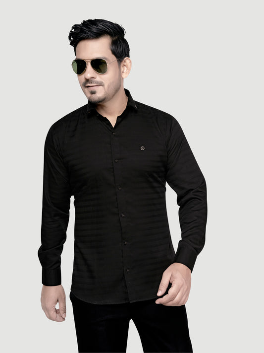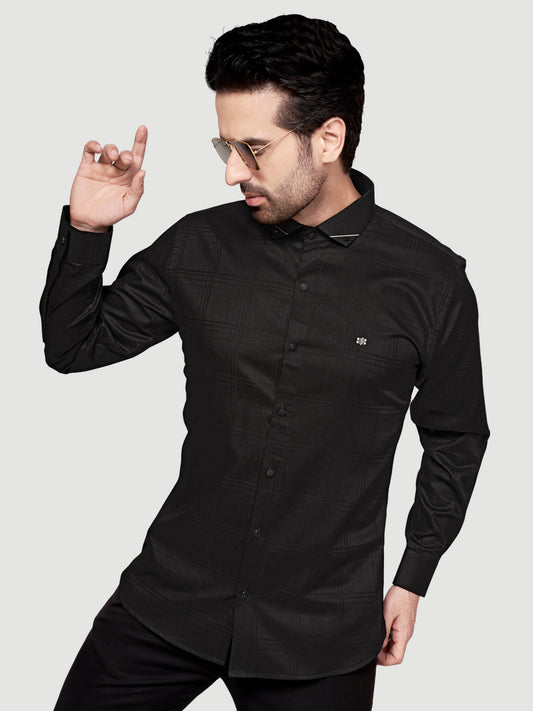 Men's Designer Shirt with textured dobby fabric & Patch - Zedd Black