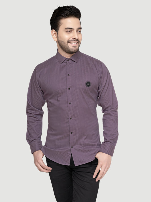 Men's Designer Shirt with textured dobby fabric & Patch - Purple