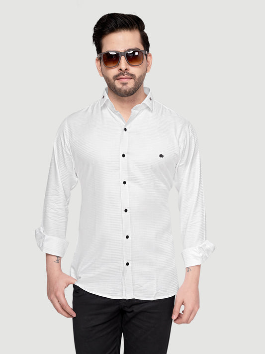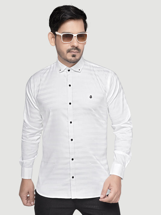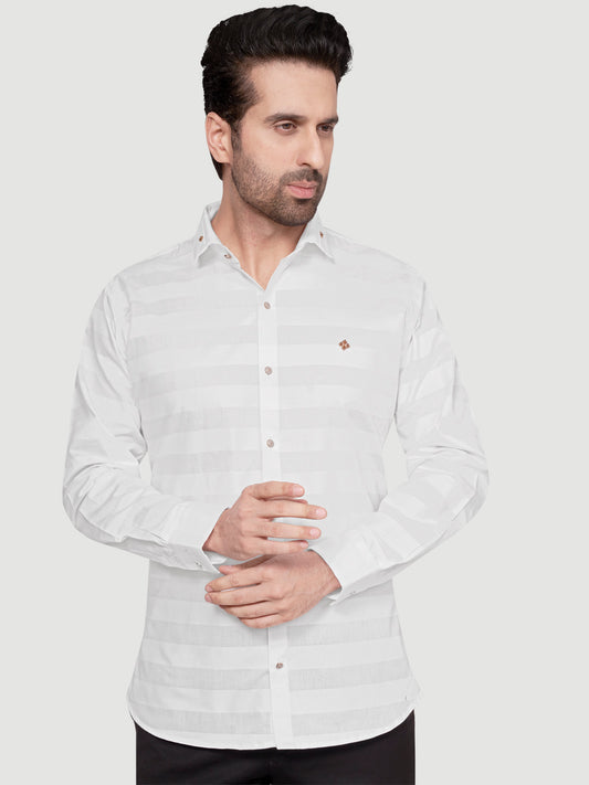 Men's Designer Shirt with Self Design Pattern - Bright White