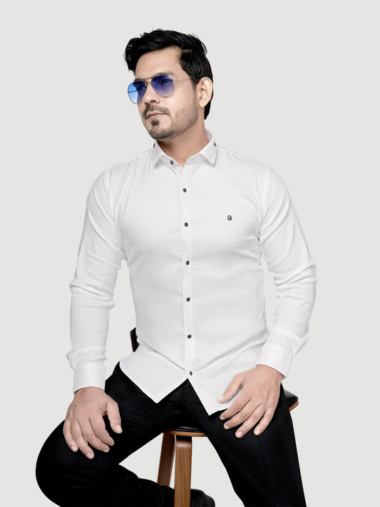 Designer Shirt with Collar Accessory & Metal Broach - Bright White
