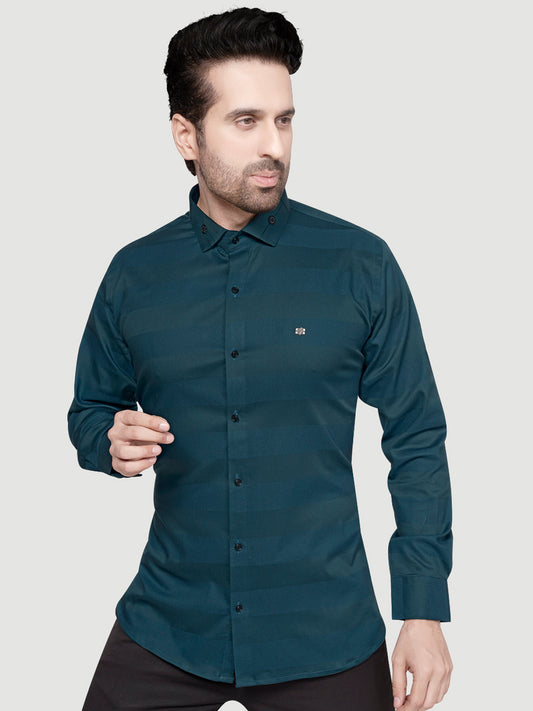 Men's Designer Shirt with Self Design Pattern - Bottle Green